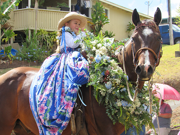Celebrating 64 years of bull riding, steer roping, barrel racing and sheep riding, the Makawao Rodeo is a staple of the upcountry ranching scene on Maui. Various events run throughout the first weekend of July, kicking off with the annual Makawao parade. Spectators line the streets of historic Makawao town, cowboy boots hiding under the shade of jacaranda trees to cheer on the various community groups that march proudly in precession. The classic cars were cool, the patriotic stilt walkers, political greeters and local fire trucks entertaining, but we were there to catch our first glimpse of the rodeo horses and their riders in formal paniolo attire. The horses wore lei of tropical flowers and ti leaves, impressively woven with care around their necks and (as is tradition) the hats of their riders. The rodeo excitement was contagious, drawing us to return later that afternoon for the main event.